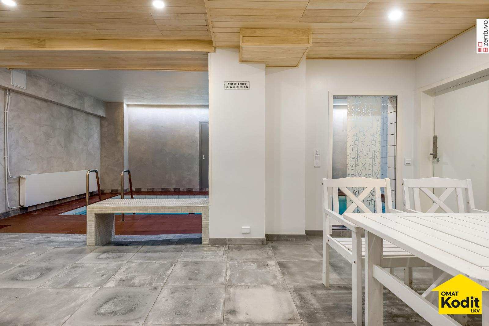 Saunan kuvaus | Saunaosasto uusittu lvis-saneerauksen yhteydessä, siellä myös uima-allas. Saunamaksu 30,- €/kk. |
