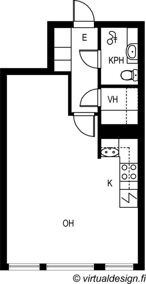 Huoneistoselitelmä | 1 h+avokk+alkovi+kph+vh |