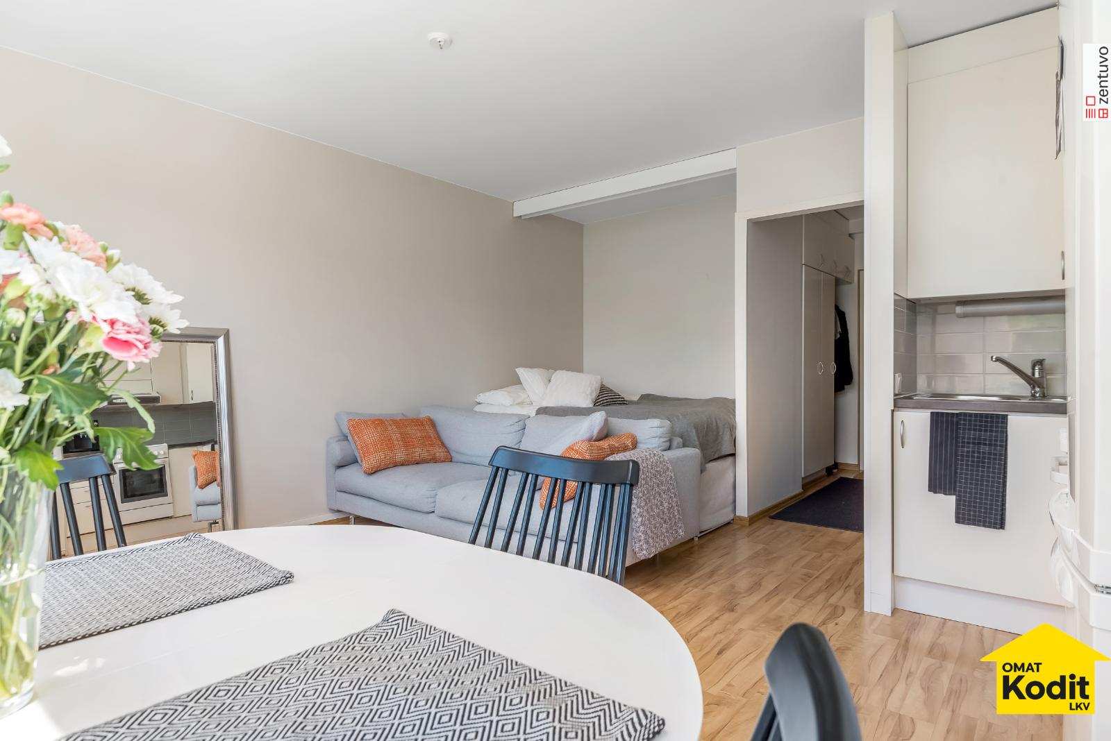 Ylimmän kerroksen valoisa ja hyväkuntoinen yksiö (vuonna 2016 putkiremontoitu taloyhtiö) vuokrataan vähintään vuodeksi määräaikaisella sopimuksella, joka jatkuu sen jälkeen toistaiseksi voimassaolevana. Asunto vapautuu 1.11.2025.