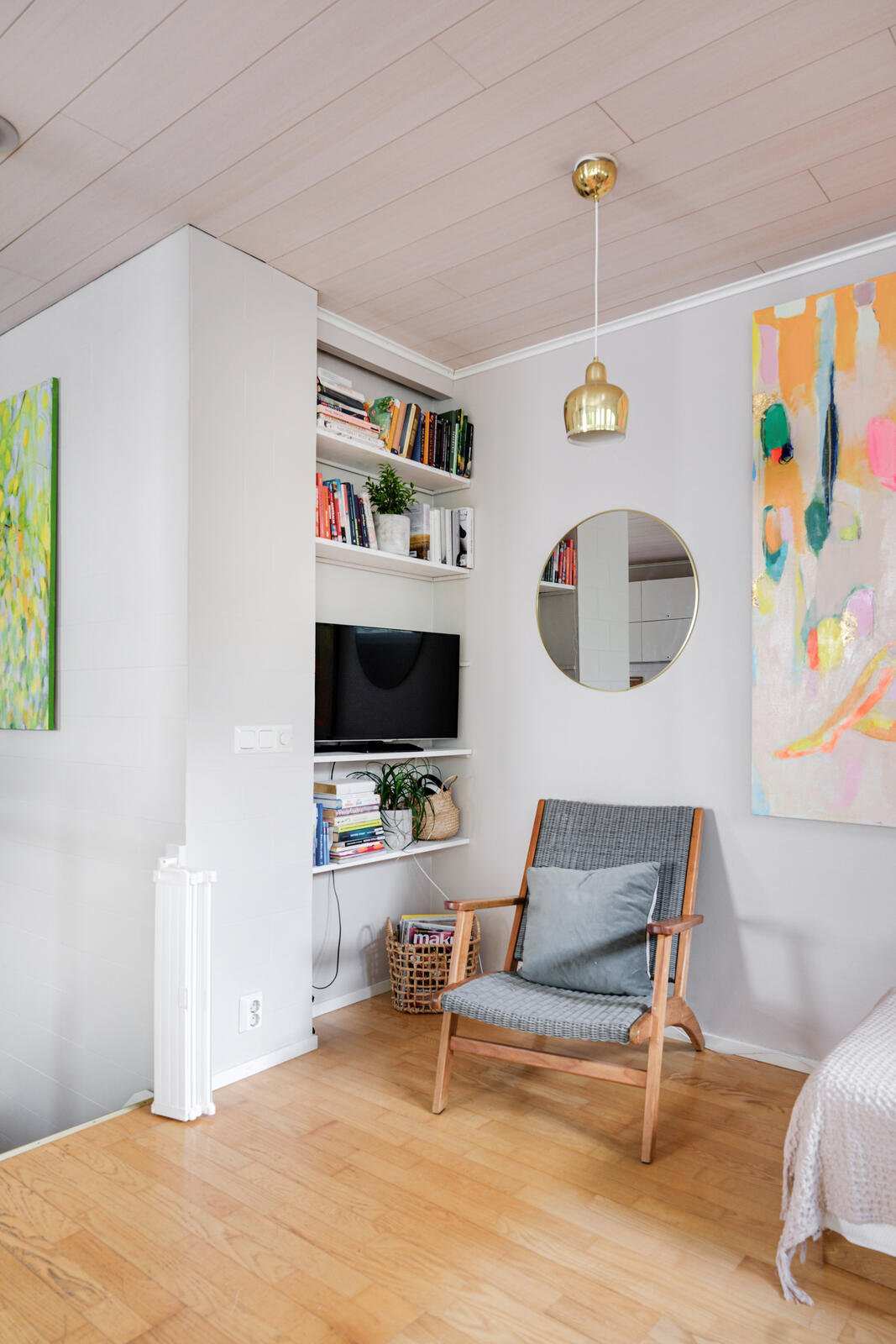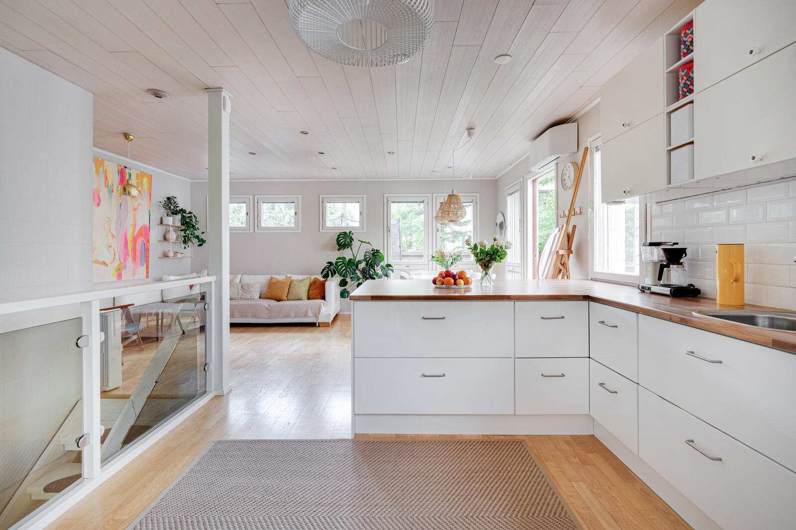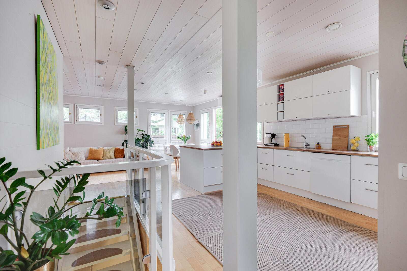 | Keittiön varustus | Avokeittiö, jossa valkoiset kaapistot, jääkaappi/pakastin, keraaminen induktioliesi, liesituuletin, kiertoilmauuni ja astianpesukone. Lattia parkettia ja osittain laatoitettu. Keittiön välitila laatoitettu vuonna 2020. |