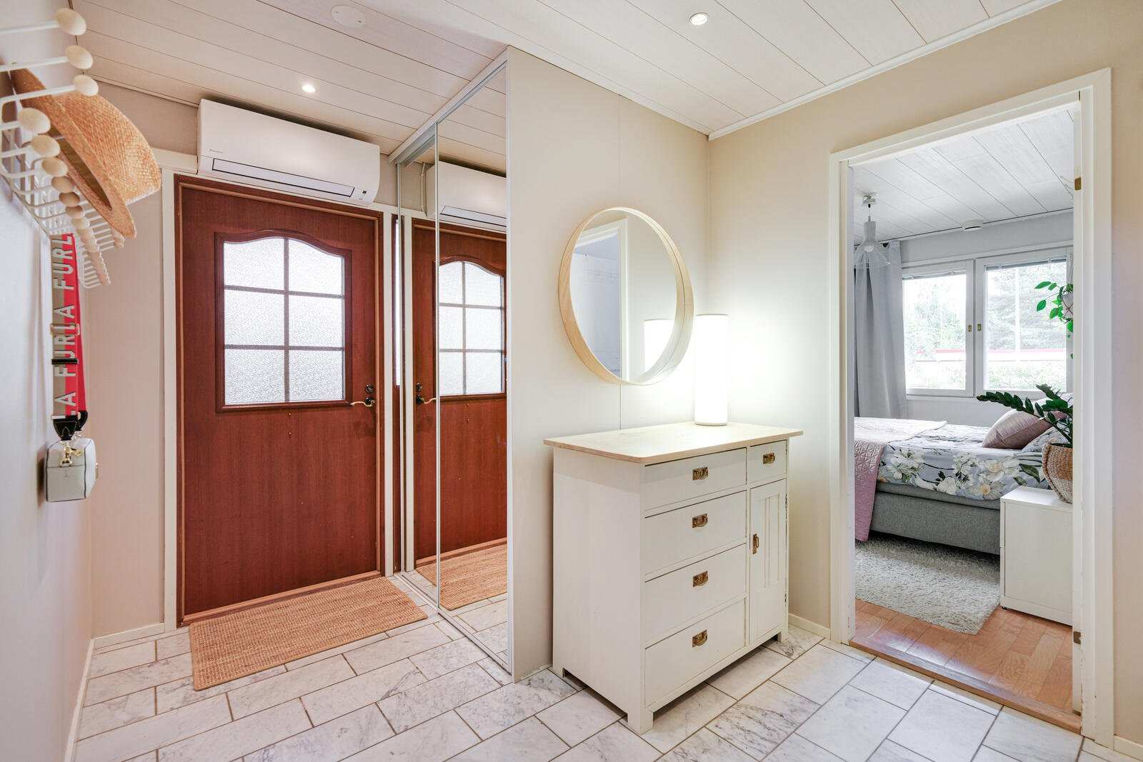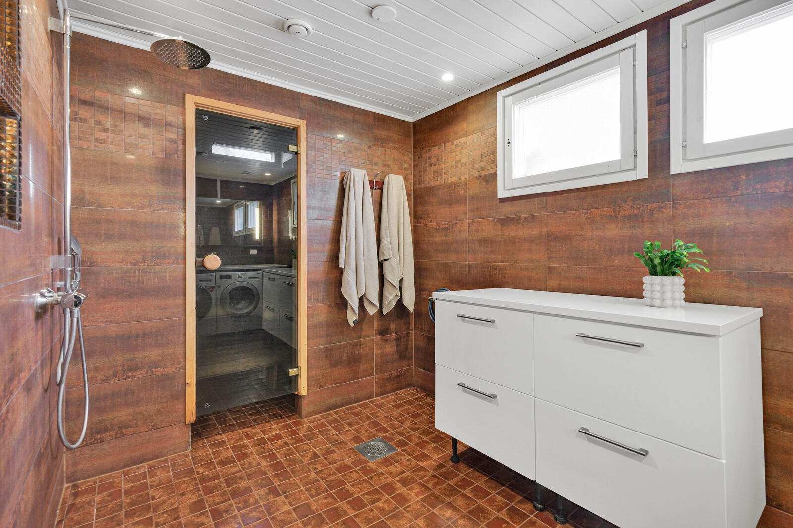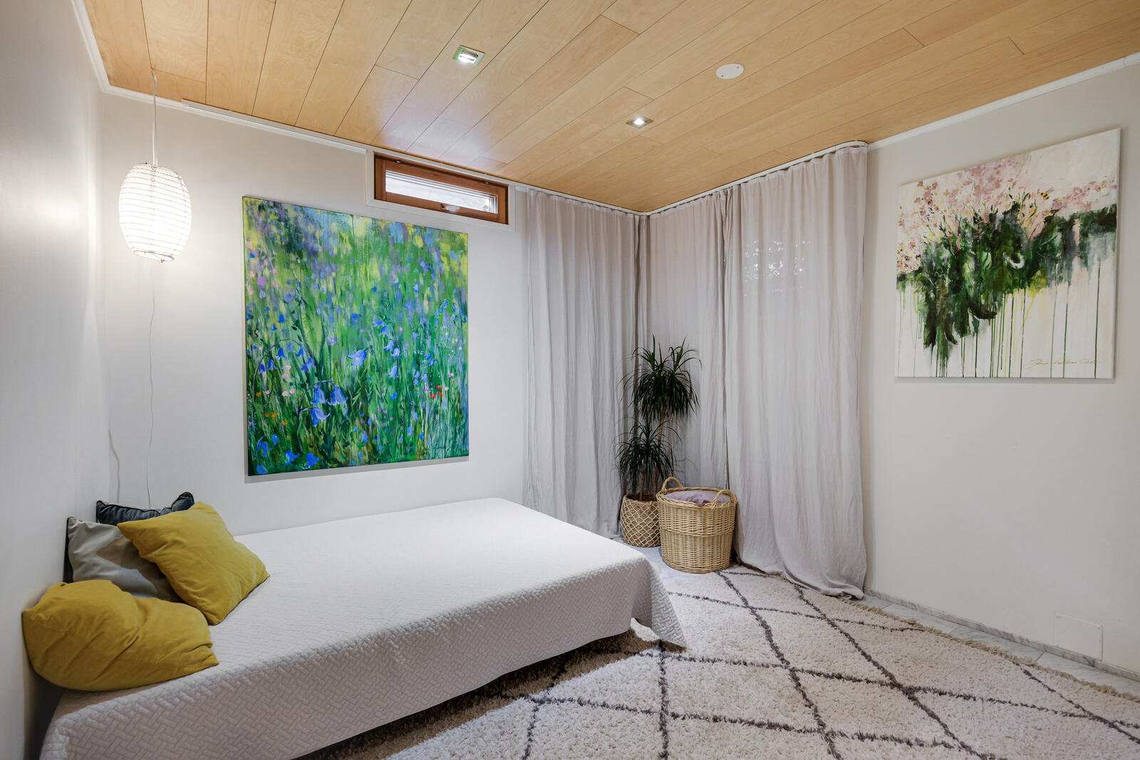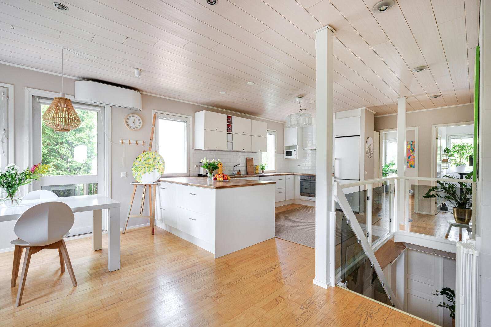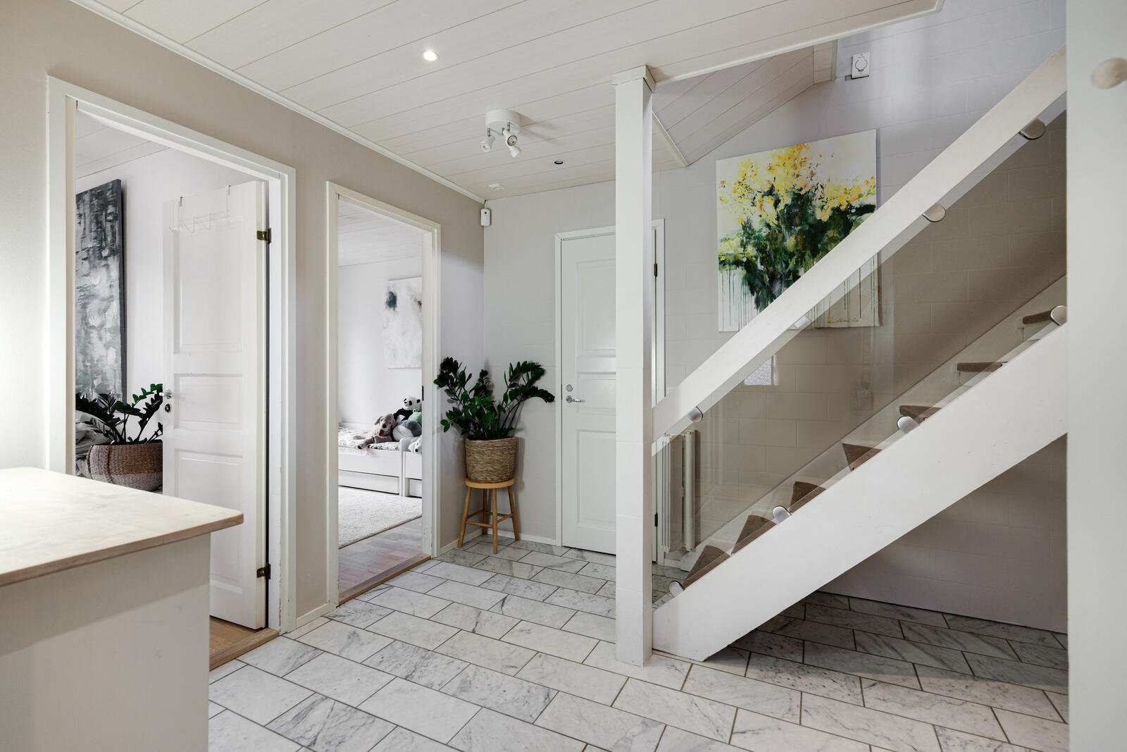 Kodin neljä makuuhuonetta jakautuvat kahteen kerrokseen, mikä tarjoaa erinomaiset puitteet lapsiperheelle tai työtilaa tarvitsevalle. Alakerran sauna ja kylpyhuone on uusittu vuonna 2013, ja yläkerran kylpyhuoneen kalusteet on päivitetty vuonna 2021. Alakerrasta löytyy myös erillinen wc ja askarteluhuone, joka toimii tarvittaessa vierashuoneena.