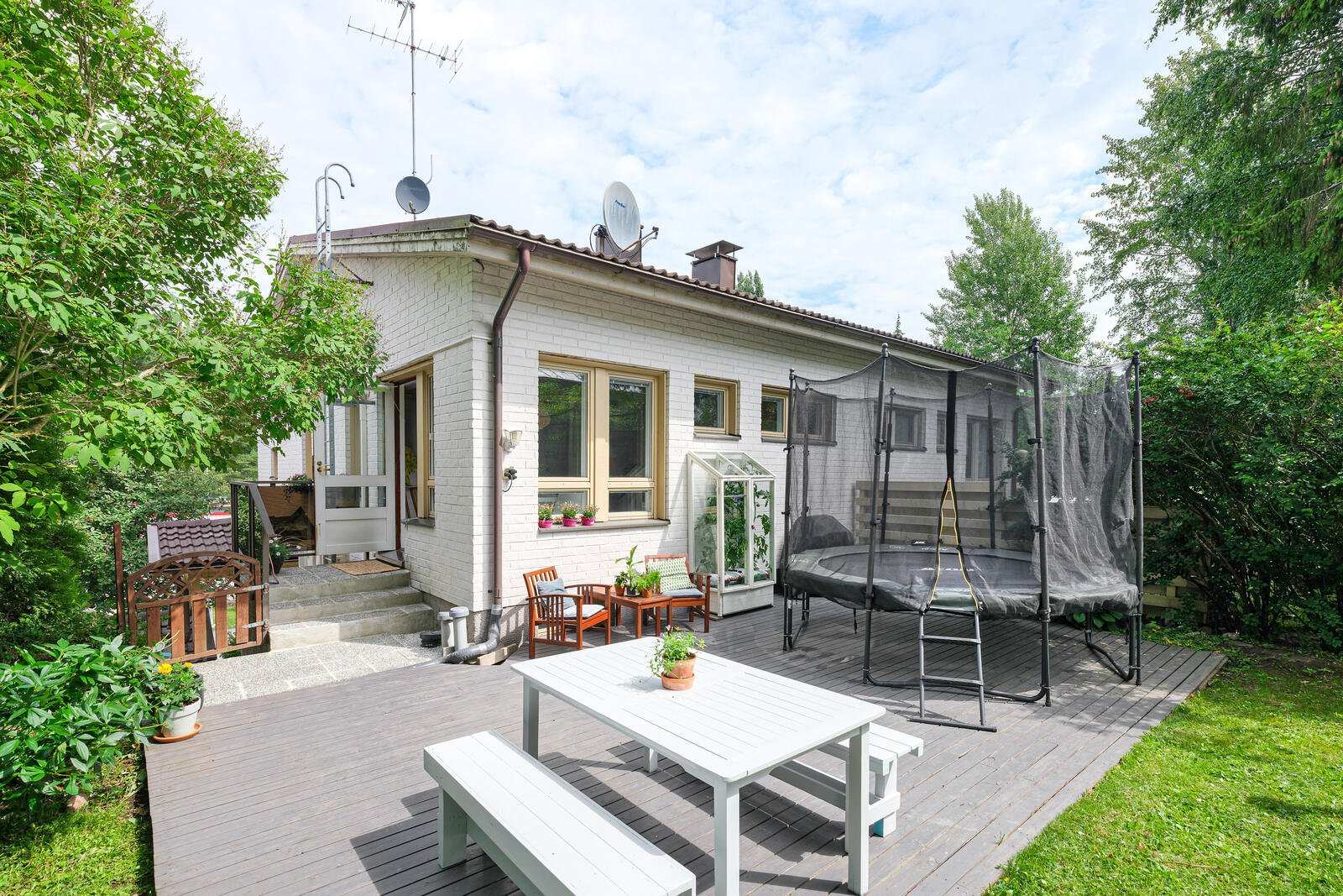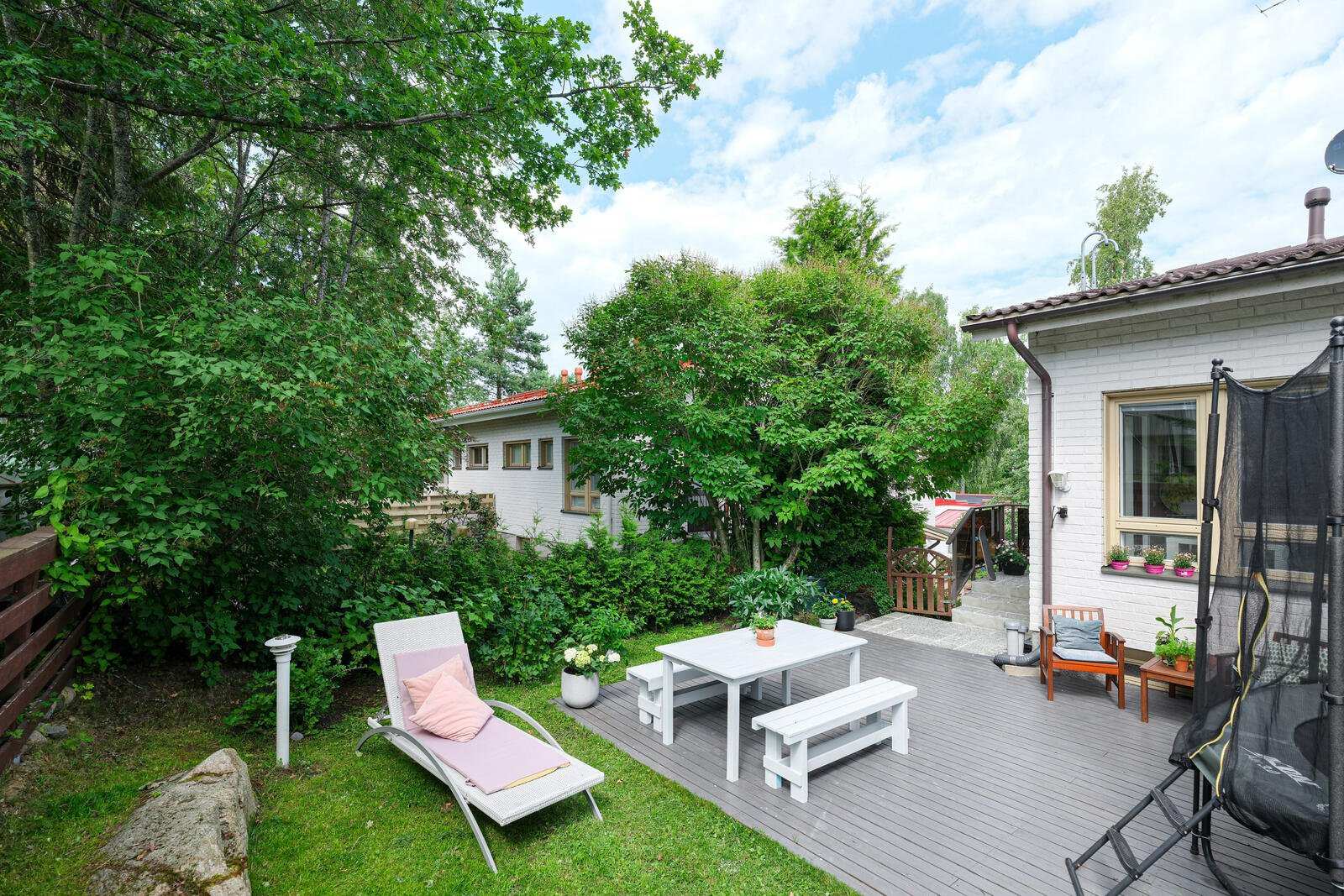 | Näkymät | Kolmeen ilmansuuntaan vehreät pientaloaluenäkymät. |