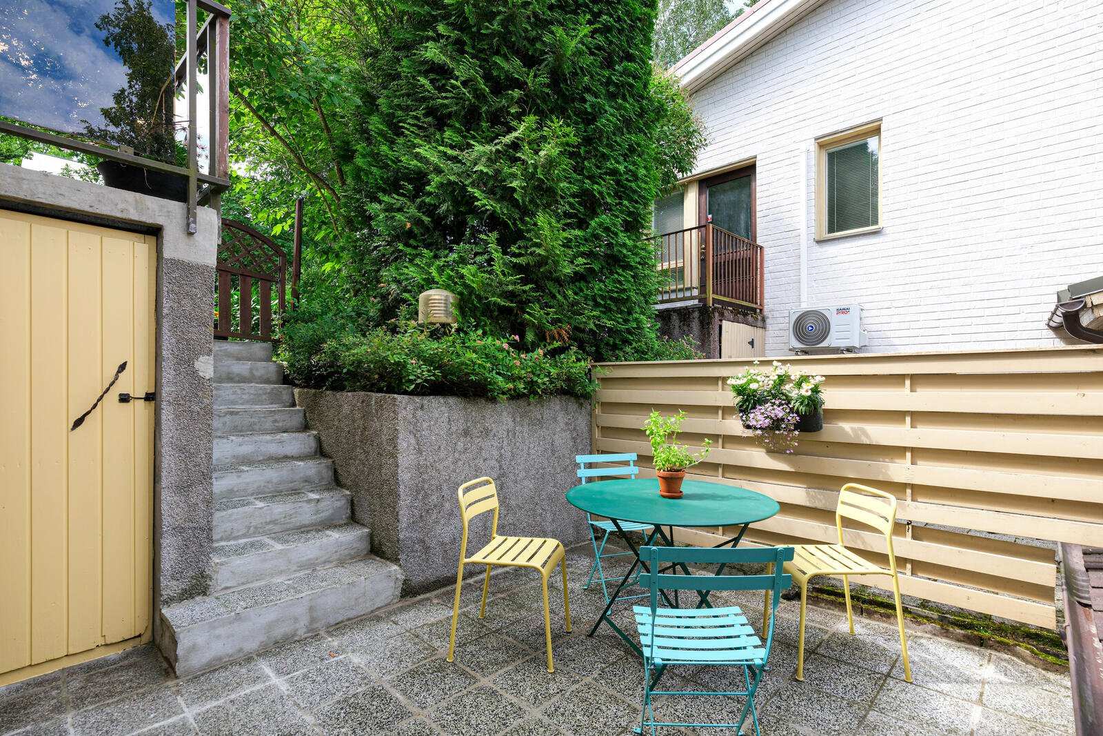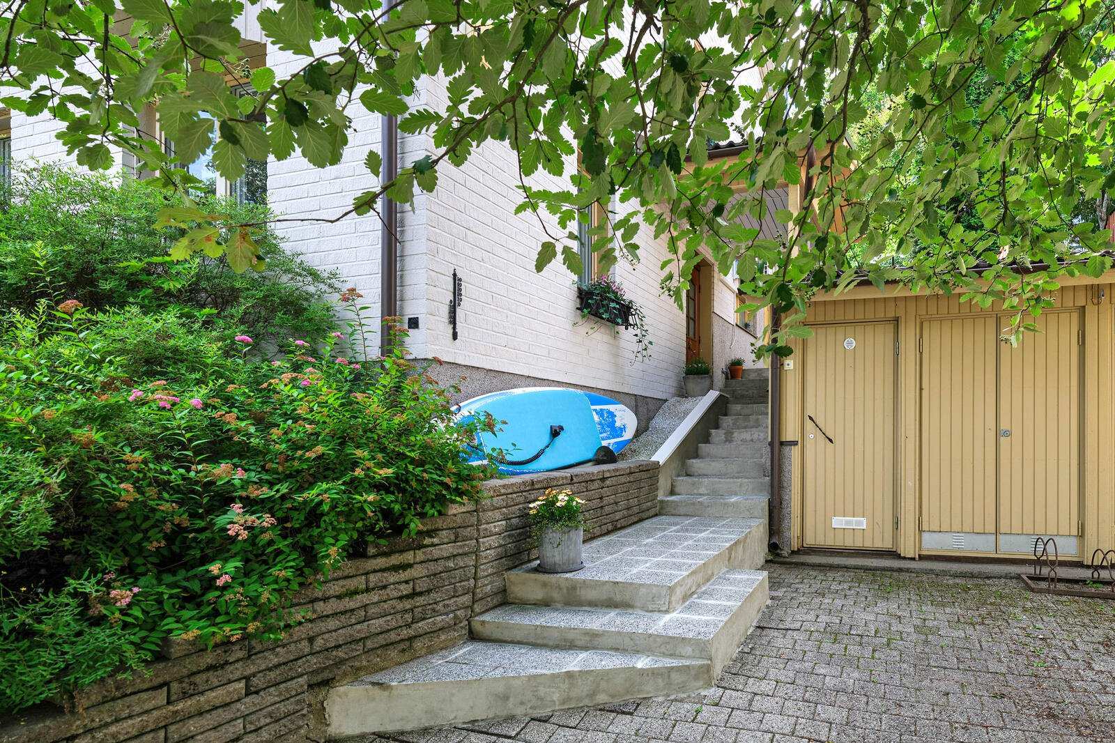 | Tehdyt korjaukset ja remontit | Jokainen osakas vastaa yksin kaikista asuntonsa korjauksista. 2026 tiilimuurin korjaus kadun edustalla 2024 alakerran seinien maalaus ja verhokiskojen asennus, vaatekomeroiden liukuovien uusinta, ulkoportaiden betonikorjaukset, takkahuoneen oven asennus, purettu kiertoilmatakka (varaus jätetty) 2023 terassilaudoituksen käsittely, eteisen muutostyö/komeron asennus 2022 katon pinnoitus, ilmalämpöpumpun asennus alakertaan 2021 IV-koneen moottorit ja kondensaattorit uusittu, ilmanvaihtokanavien nuohous ja säätö, ilmalämpöpumpun asennus yläkertaan, yläkerran kylpyhuoneen kalusteet uusittu ja silikonit vaihdettu 2019-2018 huoneiston seinät maalattu, keittiön välitila laatoitettu ja valaistus uusittu 2017 rakennuksen ulkopuoliset puuosat maalattu 2013 alakerran kylpyhuone ja sauna sekä wc uusittu 2012 keittiö uusittu |
