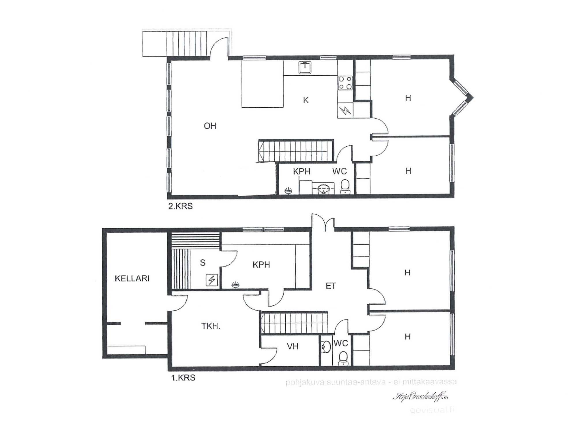 | Lämmitysjärjestelmä | Sähkö ja ilmalämpöpumppu molemmissa kerroksissa |