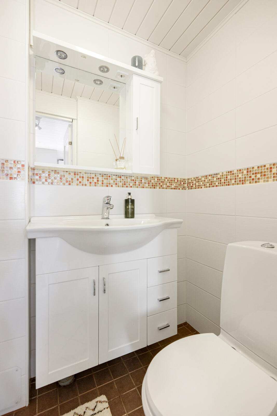 | Kylpyhuone | Alakerran kylpyhuoneen on edellinen omistaja uusinut vuonna 2013. Kokonaan laatoitettu, suihku, amme ja pesukoneliitäntä ja lämminvesivaraaja. Yläkerran kylpyhuoneen kalusteet uusittu vuonna 2021. Kokonaan laatoitettu, peili allaskaapisto, wc ja suihku. |